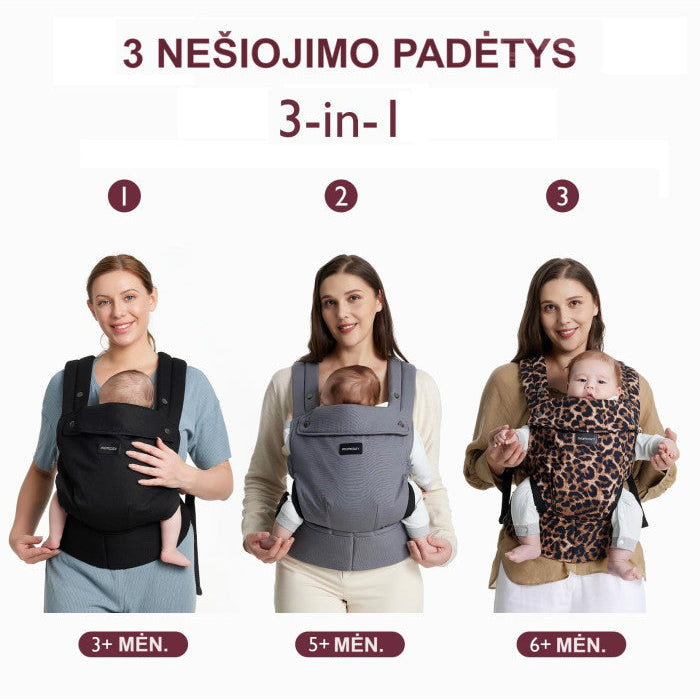 Pārnēsātājs ir ergonomisks gan jūsu bērnam, gan jums. Tas notur mazuli ērtā pozā, padarot to par ideālu alternatīvu vēdera plastikai. Var lietot bērniem no 7 līdz 20 kilogramiem – mazuļi droši ceļos līdzi.