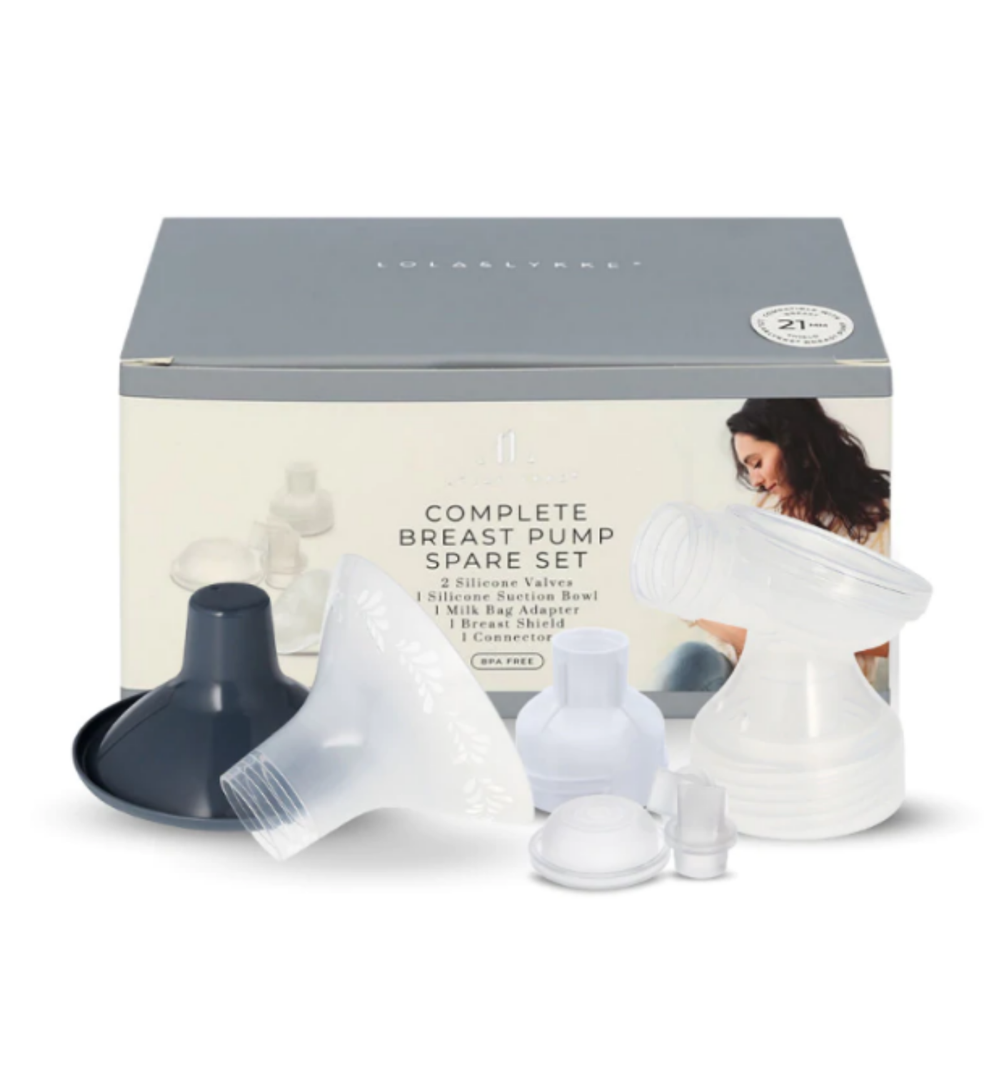 Lola&Lykke krūts sūkņa nomaiņas/rezerves komplekts ļaus jums mierīgi lietot krūts sūkni, kamēr esat atstājis vienu daļu nomazgāšanai vai žāvēšanai, ceļojumā vai vienkārši atsvaidzināt krūts sūkņa izskatu.